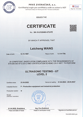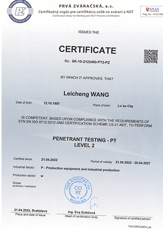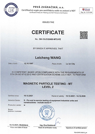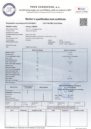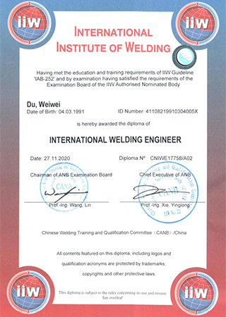 Certificado de inspeção de soldagem